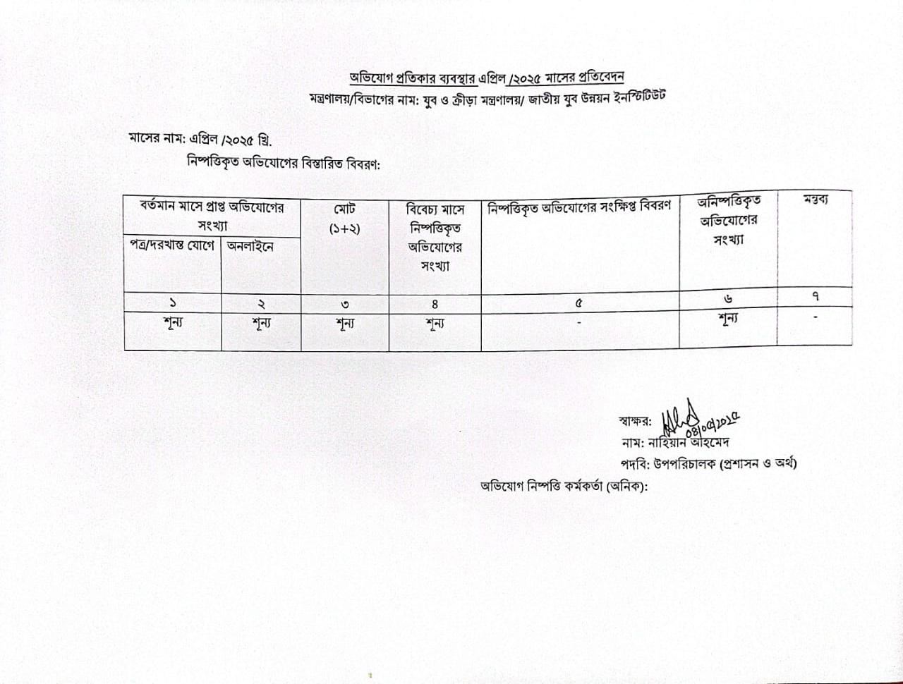 | ১ | অভিযোগ প্রতিকার সংক্রান্ত এপ্রিল/২০২৫ মাসের প্রতিবেদন | ০৪-০৫-২০২৫ | দেখুন | |