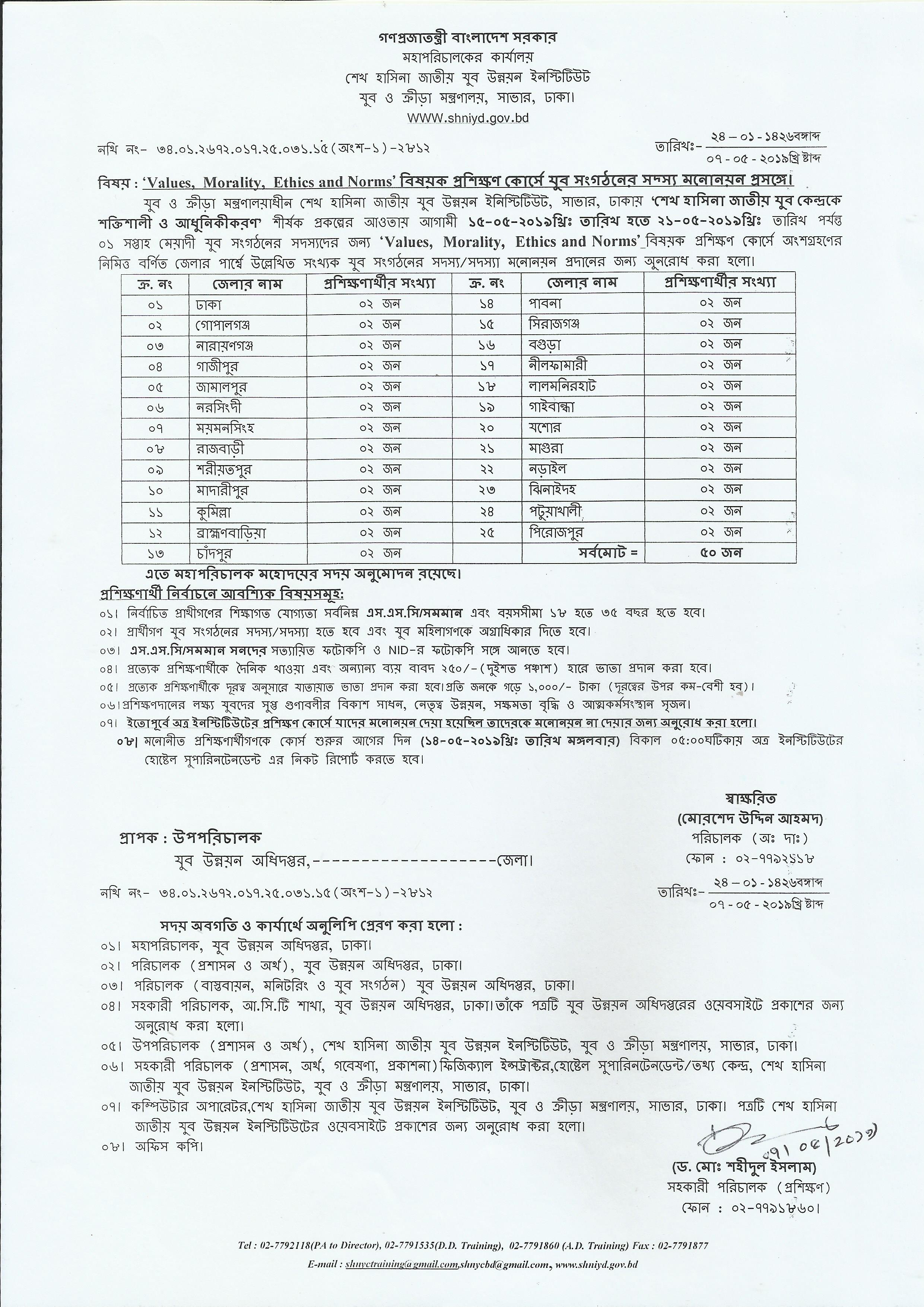 | ৭ | আগামী ২২-০৫-২০১৯ খ্রিঃ তারিখ অনুষ্ঠিতব্য ০১(এক) সপ্তাহ মেয়াদী “Values, Morality, Ethics and Norms” বিষয়ক প্রশিক্ষণ কোর্সে মনোয়ন প্রসংগে | দেখুন | ||
